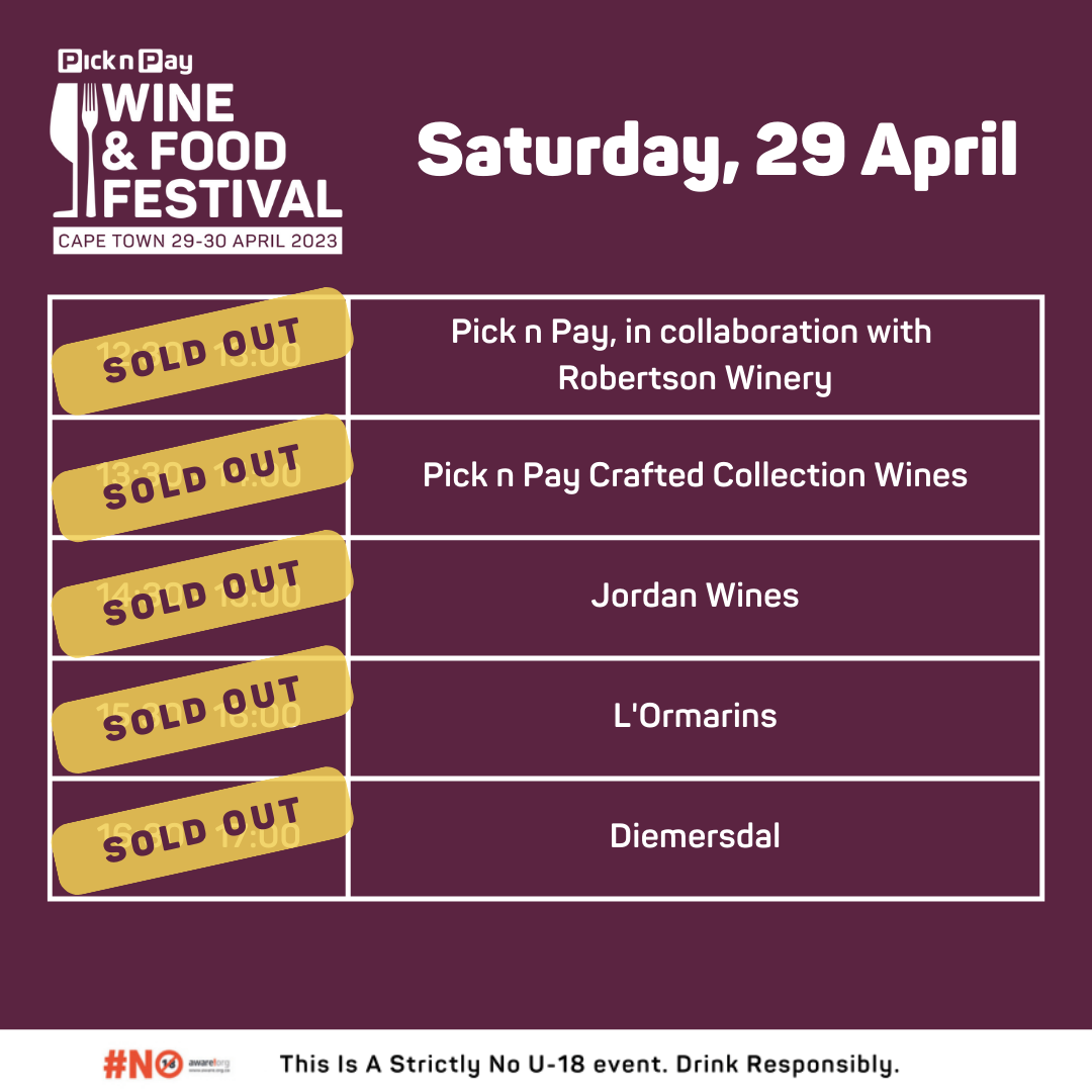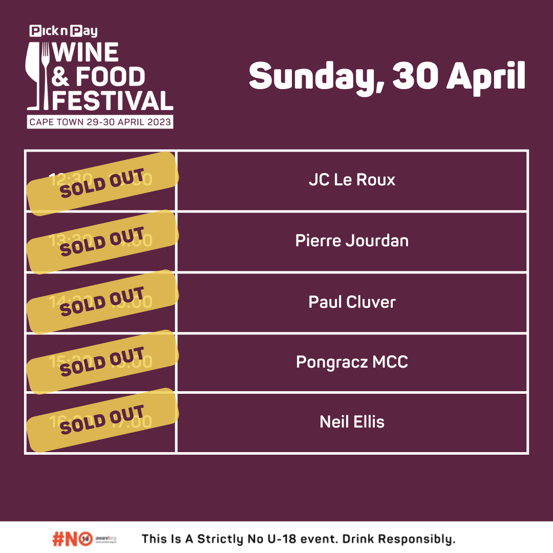 The Pick n Pay Wine & Food Festival’s exclusive Tasting Room sessions are now sold out!