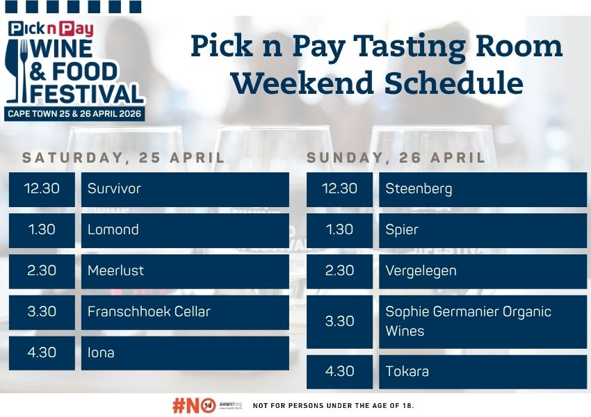 Your Pick n Pay Tasting Room Session booking INCLUDES Event Access.
